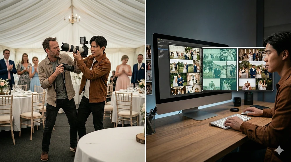 When there are two photographers or a mixed photo and video team, lack of coordination is a silent disaster. Without agreement on positioning or coverage, teams step on each other, duplicate angles, and miss irreplaceable moments. The solution is simple: define before the event who covers what, with which lenses, and have basic signals for key moments. With video teams, the prior conversation about priorities prevents conflicts exactly when you can least afford them.